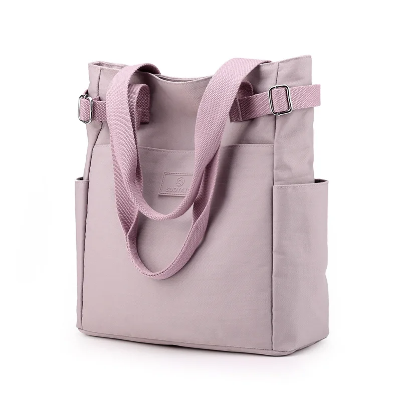 תיק בד בעיצוב פשוט ומהמם! עם כתפיות בד מעוצבות וכיס חיצוני גדול, התיק נגד מים ועם הרבה מקום, קיים בשישה צבעים עדינים לבחירה