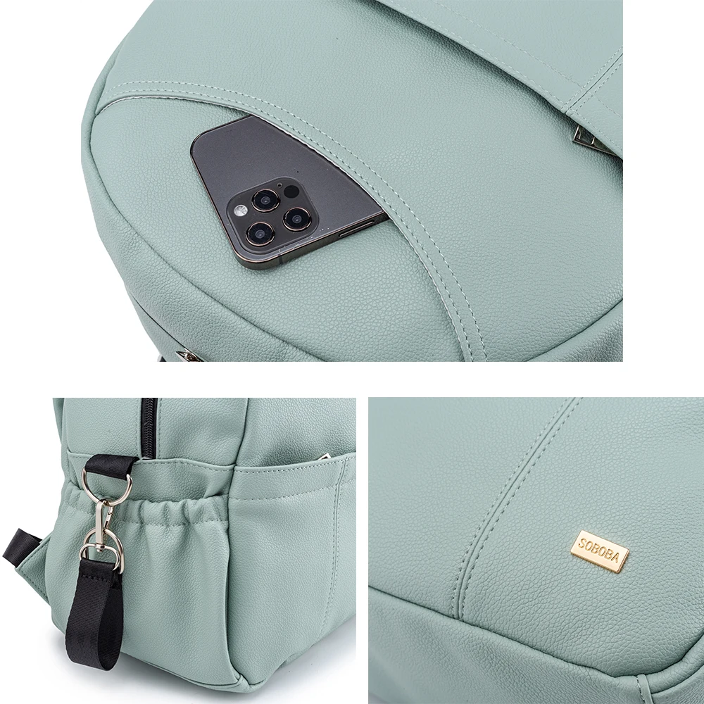 תיק החתלה יוקרתי של חברת SOBOBA באיכות גבוהה מאוד מעור PU, בעיצוב עדין ומושלם עם הרבה מקום לכל הדברים של התינוק והאמא, קיים בצבעים ירוק, וורוד, לבן, צהוב, חום ושחור